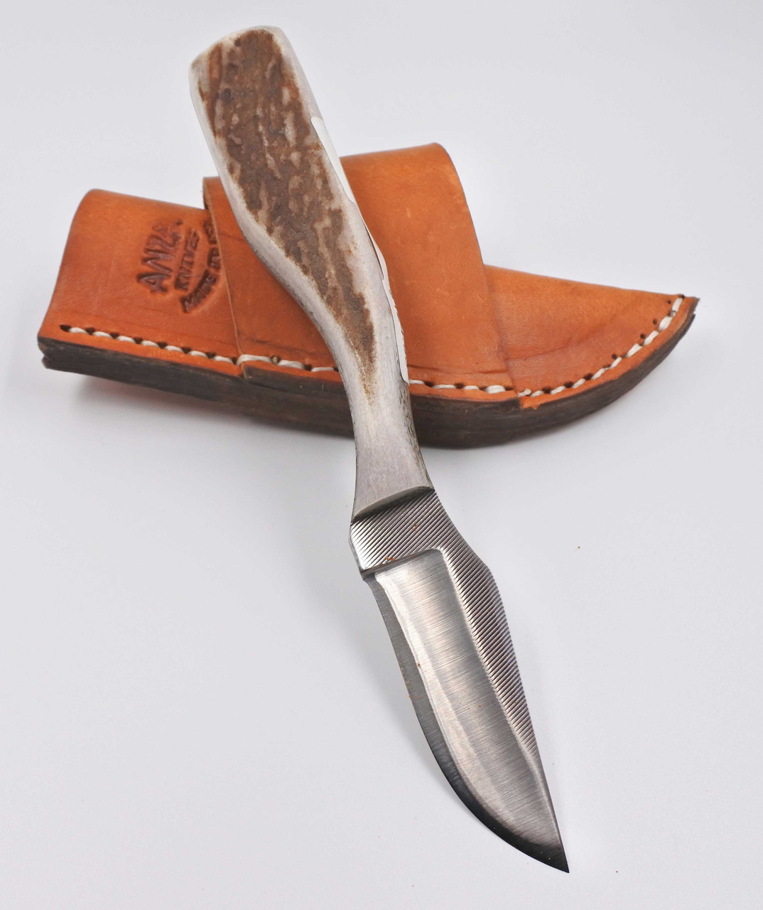 Loading... Please wait...Anza Cherokee Rose FE Fixed Full Tang Blade Knife with Elk Handle With Cross Draw Leather Sheath