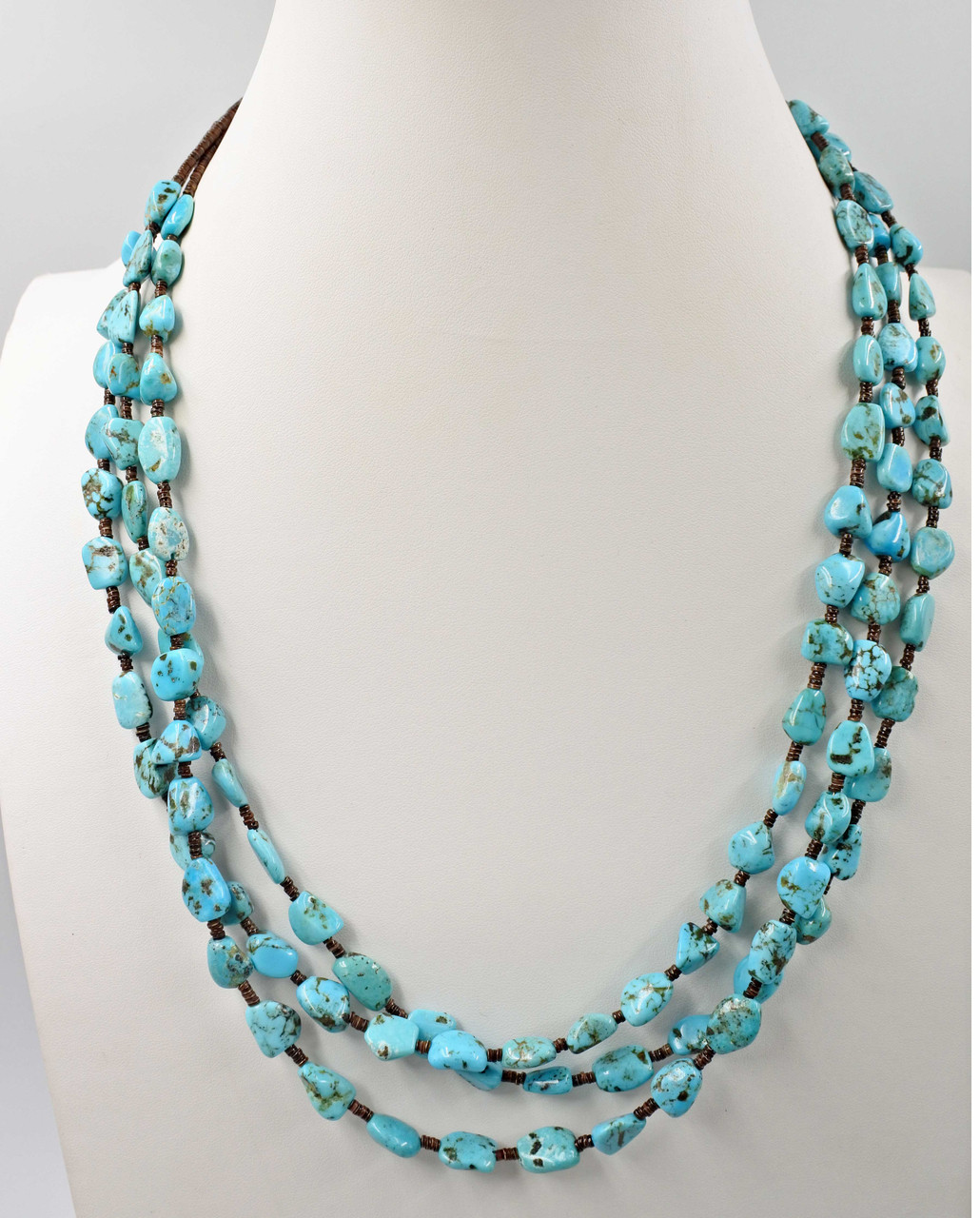 Loading... Please wait...Genuine 3 Strand Turquoise Necklace Sterling Silver Clasp 25” Long