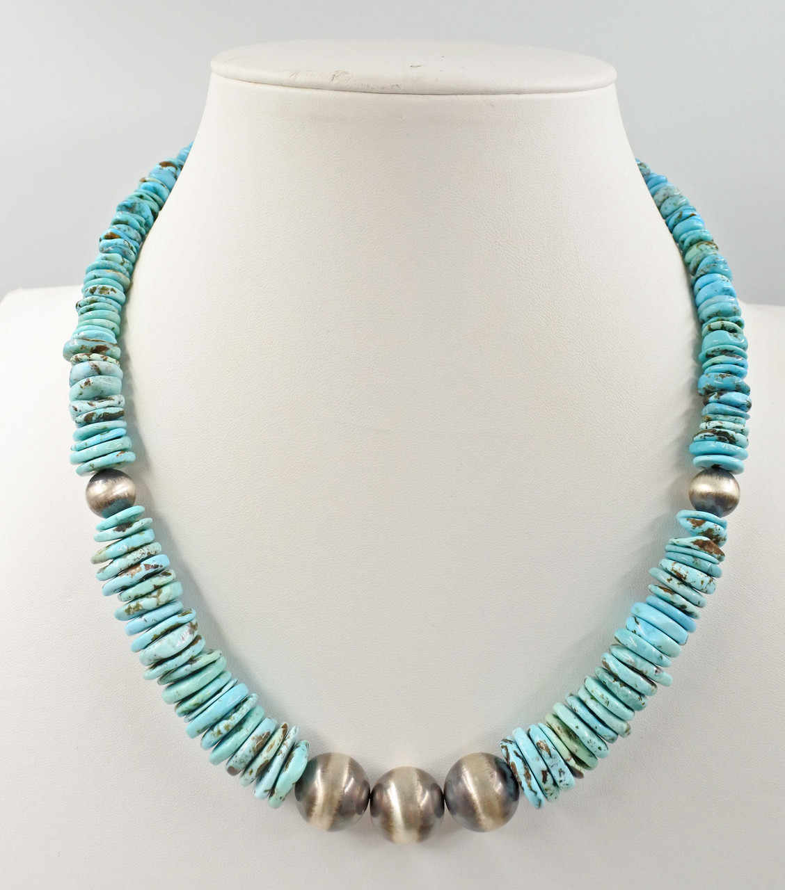 Loading... Please wait...This Genuine graduated Turquoise Beaded and Sterling Silver Navajo Pearl Necklace 21” Long