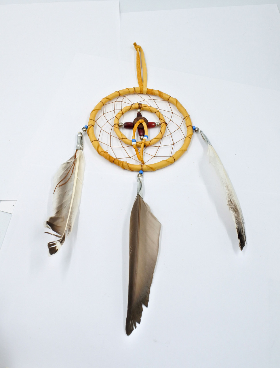 The good spirit dreams will always find their way through the center opening and gently float down the sacred feather to bless the dreamer with peaceful dreams.
