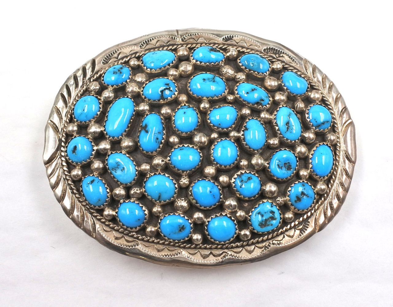 Turquoise belt buckle Artisan by Navajo artist A Whitegoate
